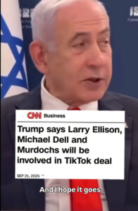 نگاهی به ترکیب کنسرسیوم خریدار تیکتاک[۶]، این همسویی استراتژیک را به روشنی نشان میدهد. در ۲۵ سپتامبر ۲۰۲۵، دونالد ترامپ امضای فرمان اجرایی برای نهایی شدن این معامله به ارزش حدود ۱۴ میلیارد دلار را اعلام کرد.[۷] خریدار اصلی این معامله، شرکت یهودی اوراکل[۸] و بنیانگذار آن یعنی لری الیسون، قرار دارند.
